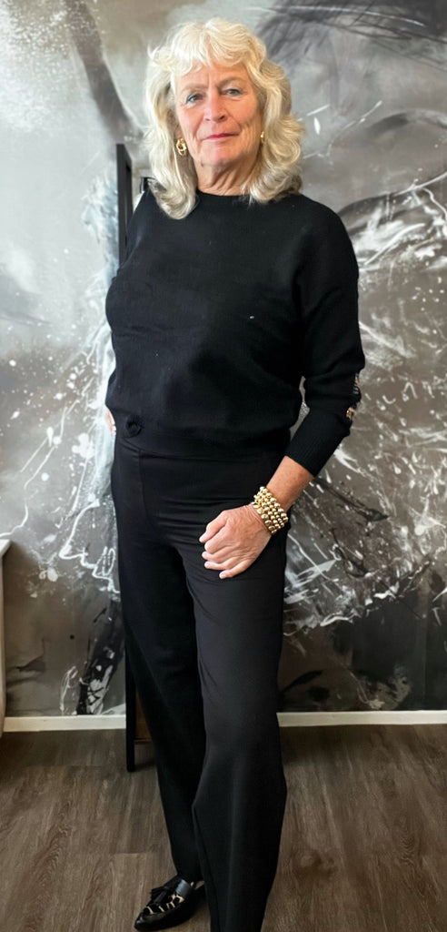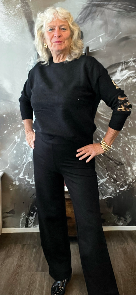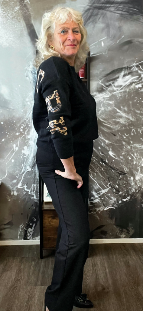 Heerlijke behaaglijke trui met opschrift New York op de achterzijde. Afgezet met palletjes.