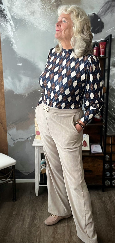 Top met turtle hals en lange manchetten in wiebertjes patroon.