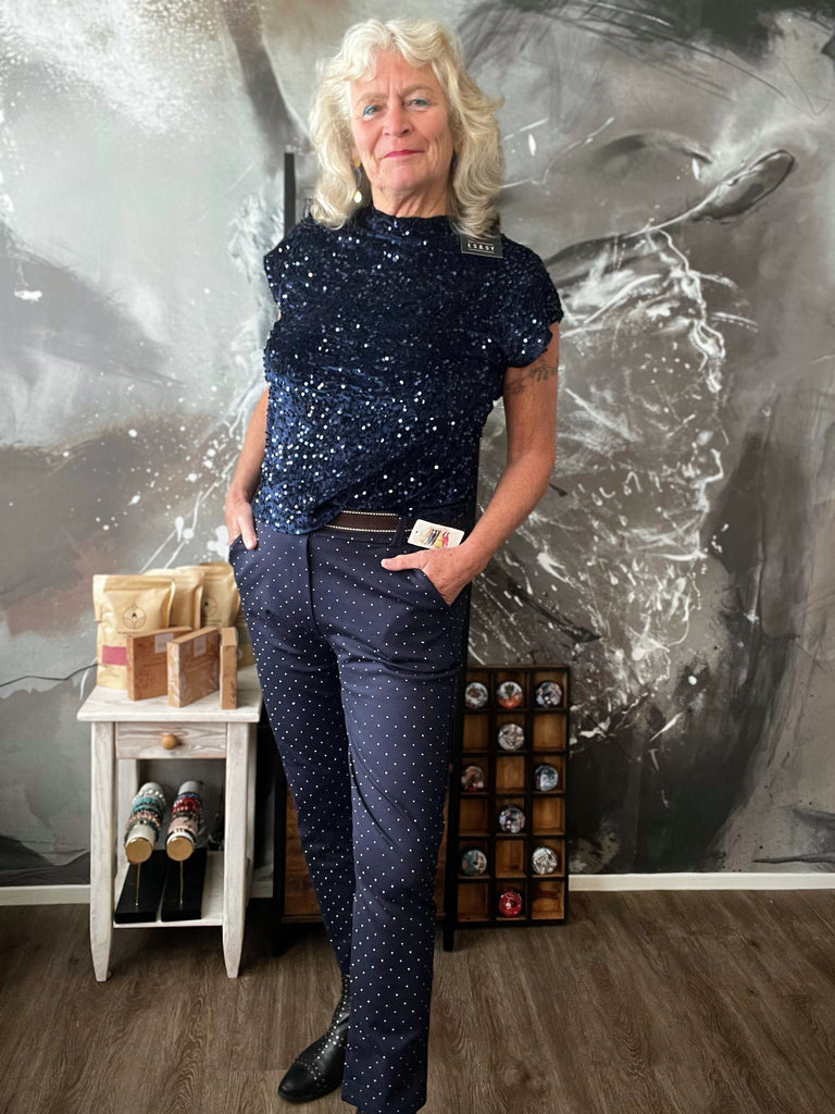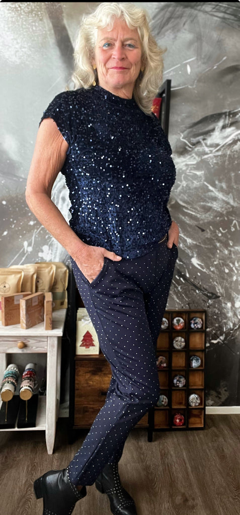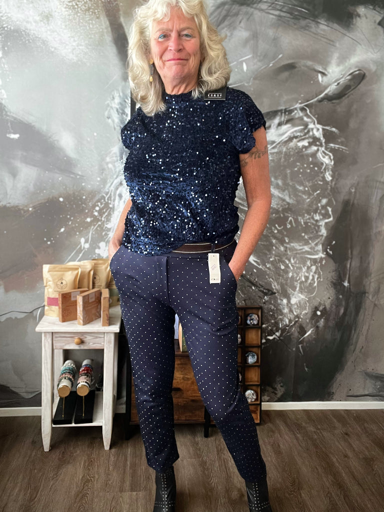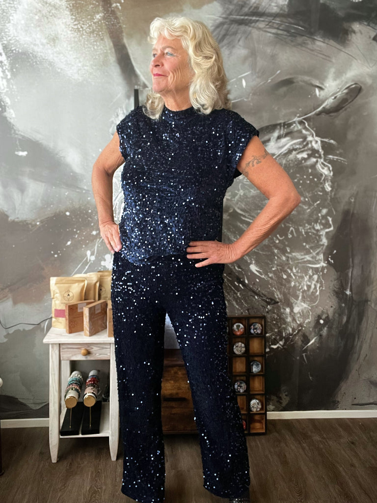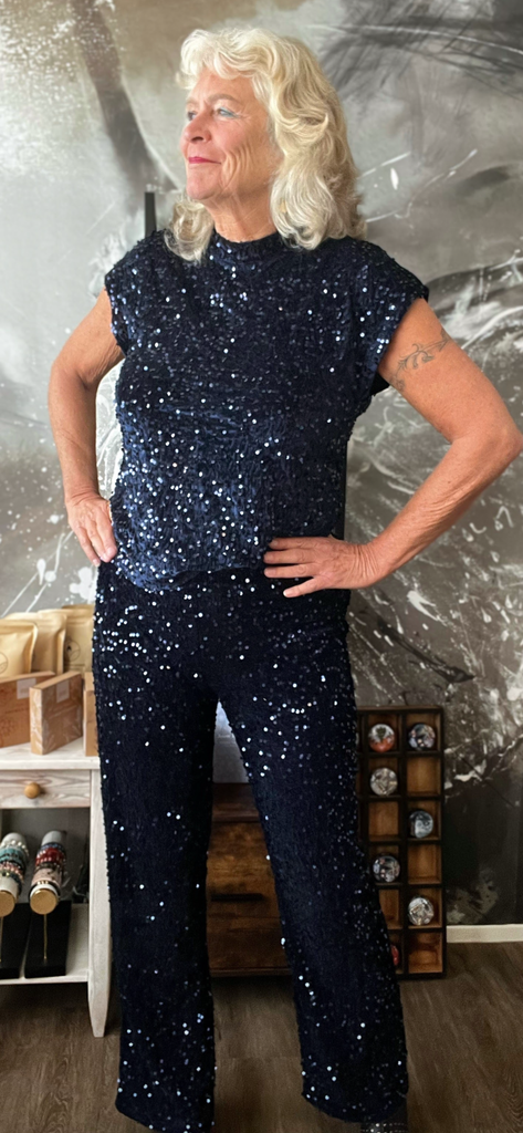 Deze pailletten top brengt instant sparkle in je outfit. De soepele stretchstof zorgt voor bewegingsvrijheid en een comfortabele fit. Draag hem als statement piece of ga voor de full look met de bijpassende broek. Verkrijgbaar in glinsterend grijs en zwart.