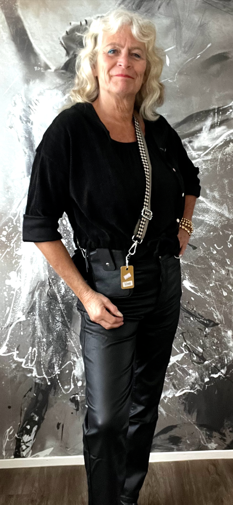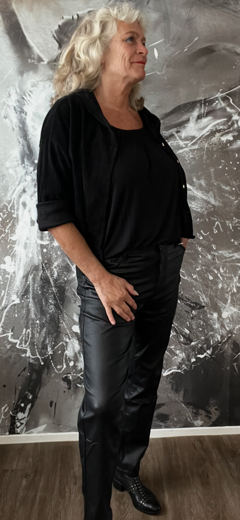 Kort rib vestje met capuchon en knoop sluiting, de boord kan dmv strakker gemaakt worden.